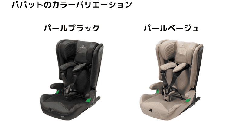 パパットシリーズはどちらも安全性が高い優秀なジュニアシートなので、機能も大事だけど見た目にもこだわりたい方は好きなカラーや生地で選ぶのもありだと思います