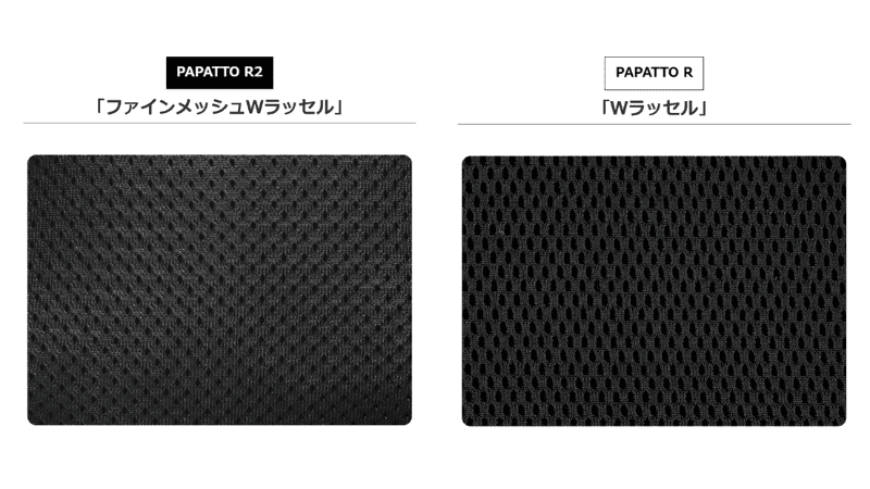 パパットR2はパパットRのWラッセルをさらに改良したファインメッシュWラッセルを採用