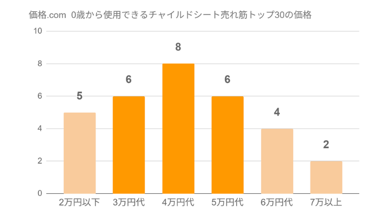 0歳から使えるチャイルドシートの価格.comでの売れ筋トップ30の価格を調べるとこんな感じ