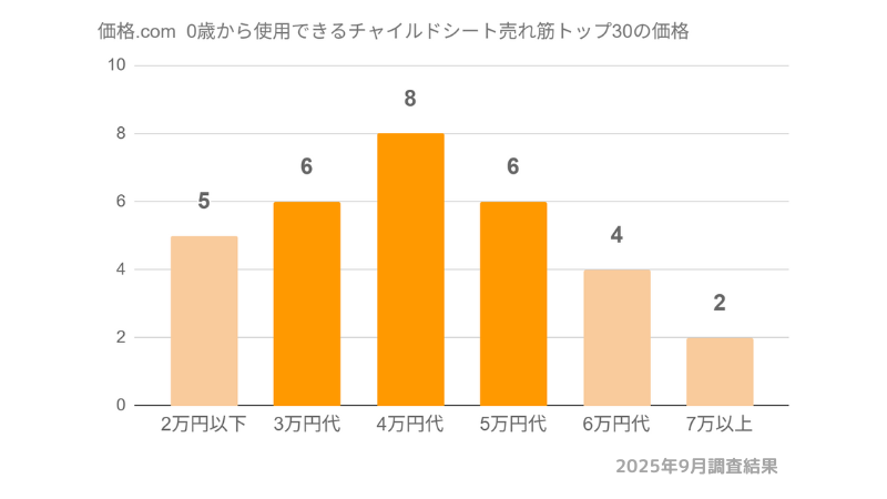 先輩ママさん、パパさんたちの多くは3~5万円代のチャイルドシートを購入されているようです ※2025年9月時点