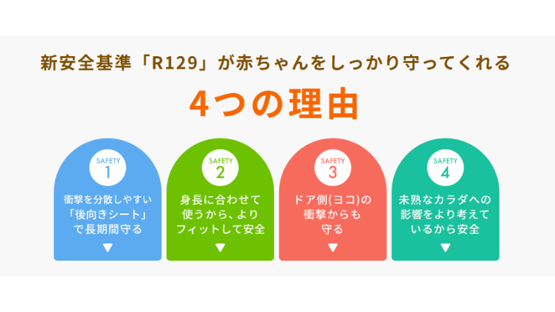 チャイルドシートには安全基準があり、最新の安全基準はR129です
