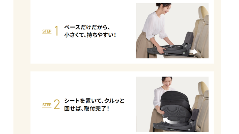| デメリット | ミスユース(誤った取り付け)が起きやすい 乗せ降ろしがしにくい | ISOFIX対応車にしか使えない 価格が高い 大きいのでスペースを圧迫する 重たいので移動が大変 |