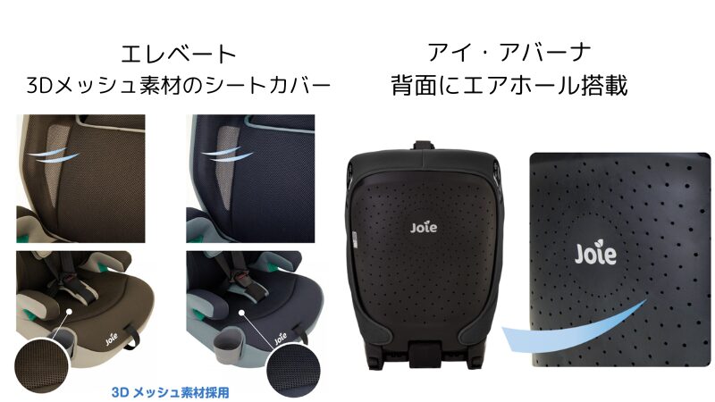 今回はjoieのジュニアシート、エレベートとアイ・アバーナを紹介しました