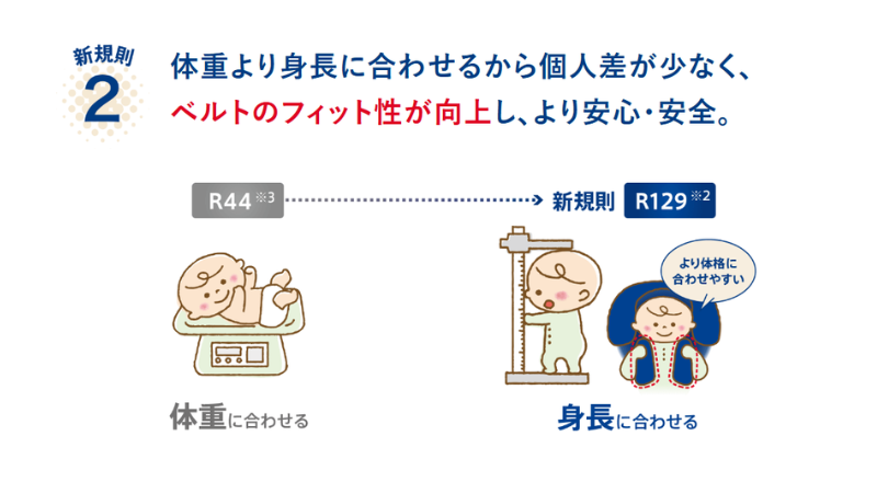 R129新基準=身長で判断すれば、このような問題も解決でき、快適な使用が可能となりました