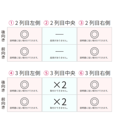 購入前に使用予定の車種、使いたい座席に取付できるかを各メーカーサイトや店頭で確認しましょう